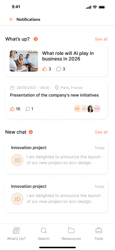 Get a birds-eye view of your company’s pulse. From global announcements to local team updates, never miss what matters.