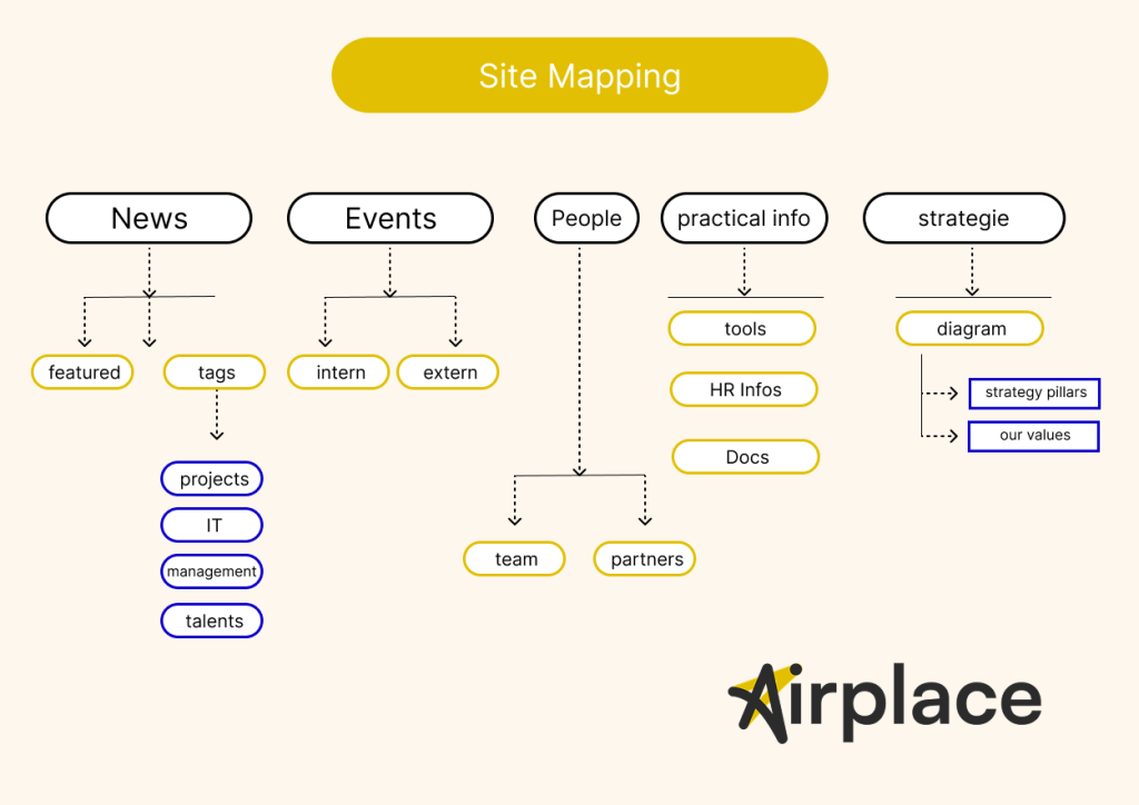 Building a Digital Workplace sitemap is the critical first step in launching your platform. It serves as the architectural foundation of your future Airplace environment, established well before moving into wireframing or UI design.